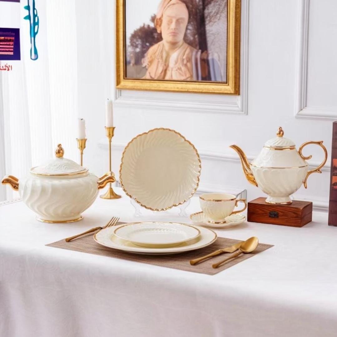 اكتشفي أطقم سفرة فاخرة بتصميمات تجمع بين الفخامة والذوق الرفيع، لتضيفي لمائدتك لمسة جمال لا تُنسى