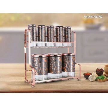 الطقم 9 قطعة بالاستاند مصمم للحافظ على رائحة التوابل ونكهتها المميزة لأطول فترة ممكنة.